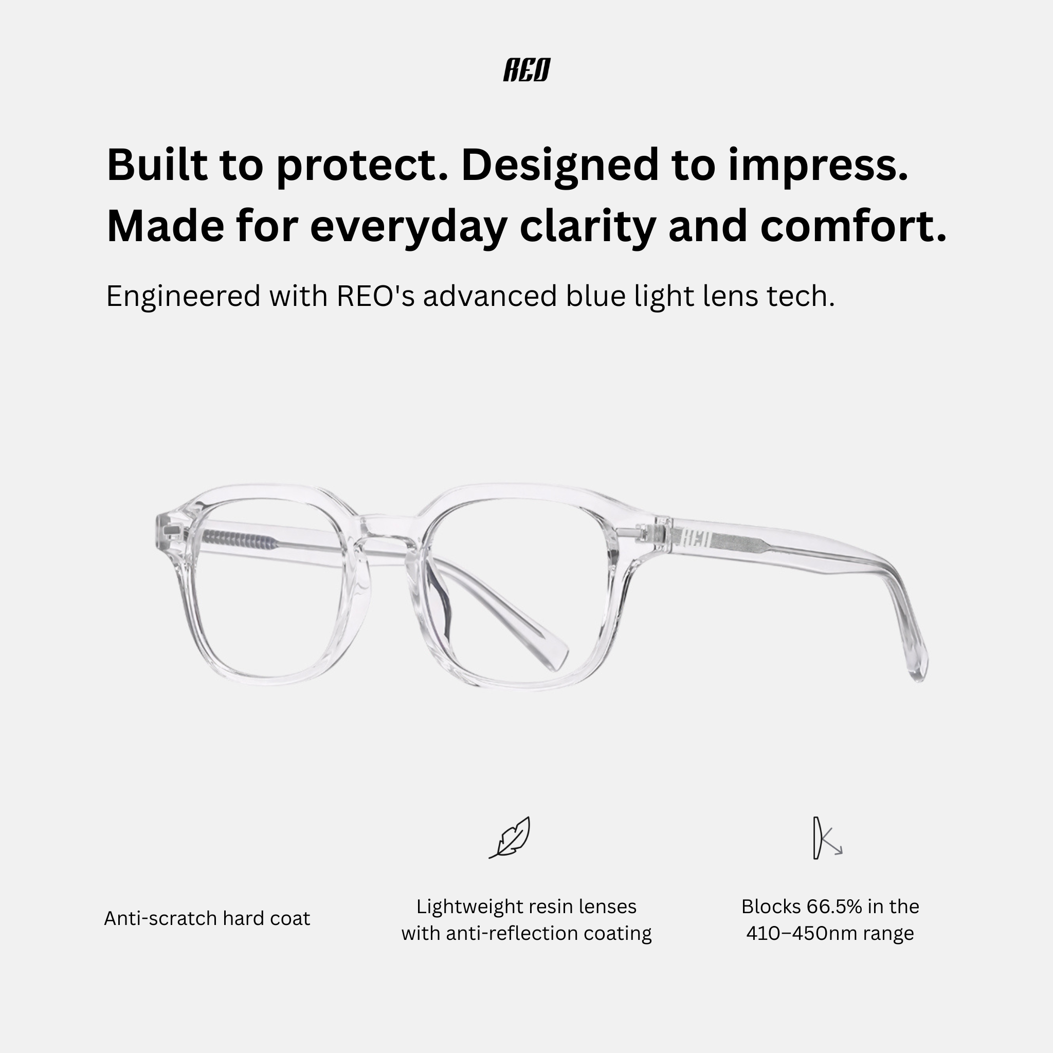 Each pair of REO blue light glasses comes with a premium REO case for safe storage and a soft microfiber cleaning cloth to keep your lenses clear and sharp.
